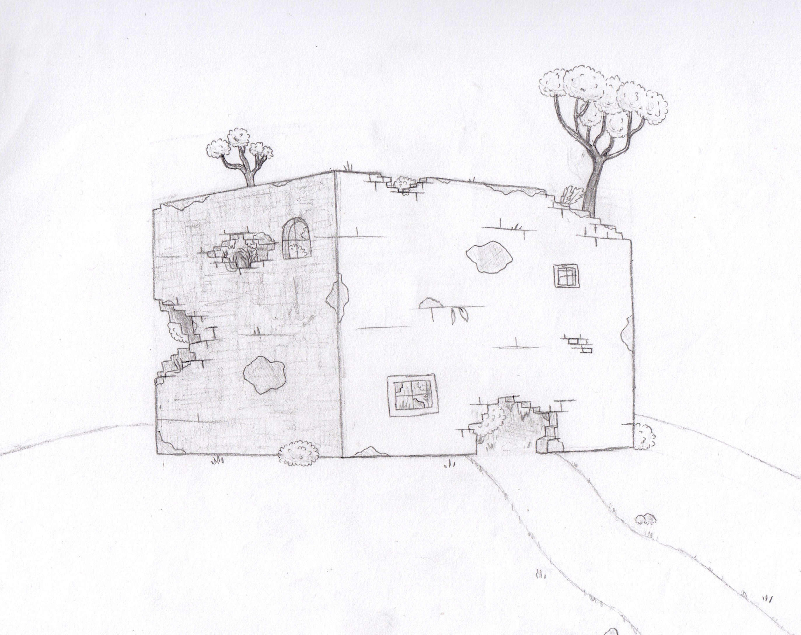 Overgrown building drawing